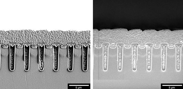 ? 電子束減速技術(shù)(BDT)進(jìn)一步加強(qiáng)了低電壓下的分辨率,并能同時(shí)探測(cè) SE 和 BSE 信號(hào)(選配);