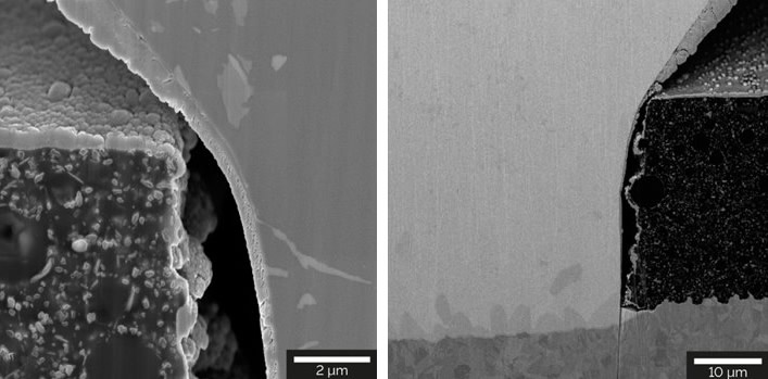 與 Ga 離子相比,Xe 離子的離子注入范圍和相互作用體積明顯更小,因此帶來的非晶化損傷也更小,這在制備 TEM 樣品薄片時尤其重要。此外,Xe 離子的惰性特性可防止研磨樣品的原子形成金屬化合物,這可能導致樣品物理性質的變化,從而干擾電測量或其它分析。